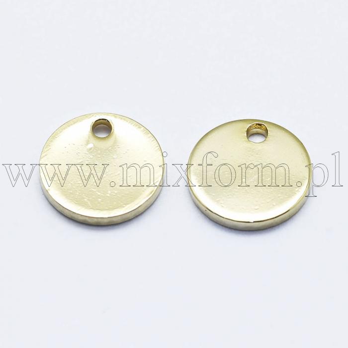 Підвіска Плоска Кругла, Латунь, Стійке Покриття Позолота 18К, 8х1мм, Отвір 1мм, (13WB30626)колір: