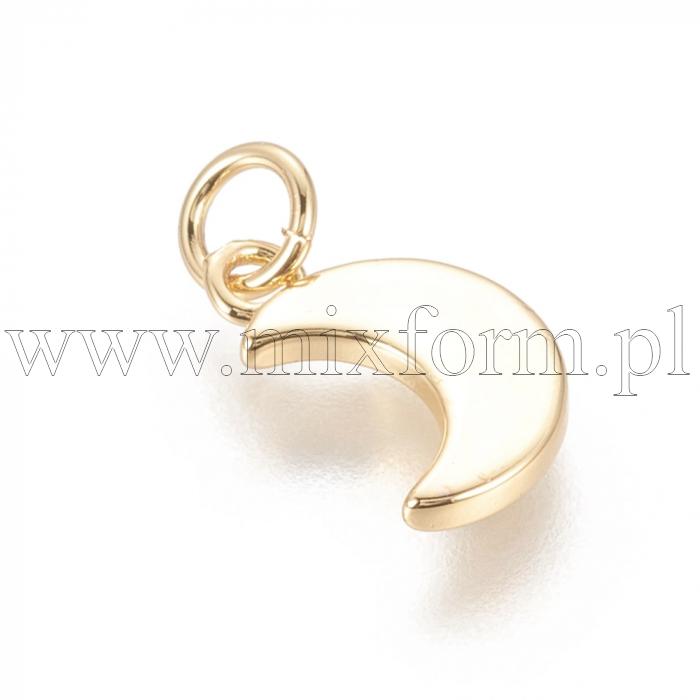 Підвіска Латунь, Півмісяць, Стійке Покриття, Позолота 18К, 13х8х1.5мм, З'єднувальне кільце 5х0.8мм, Внутрішній діаметр 3мм, (13WB30741)колір: