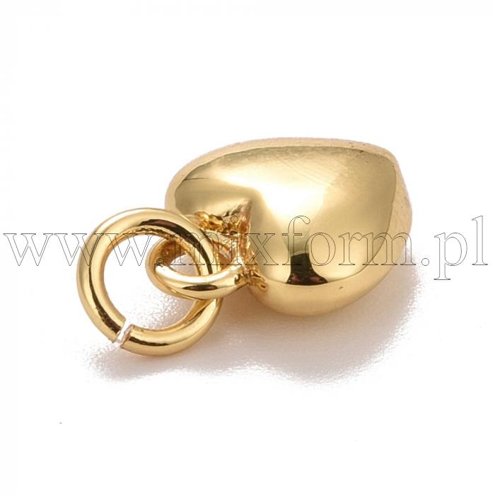 Підвіска Латунь, Серце, Позолота 18К, 9.5х7.5х3.5мм, З'єднувальне кільце 4.6х0.8мм, Внутрішній діаметр 3мм, (13WB30775)колір: