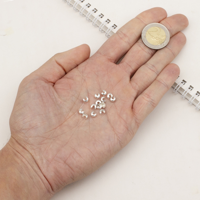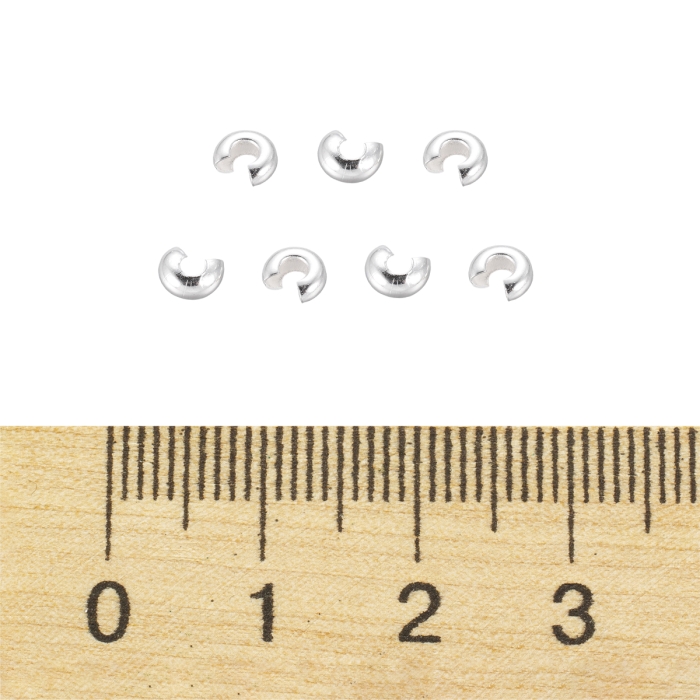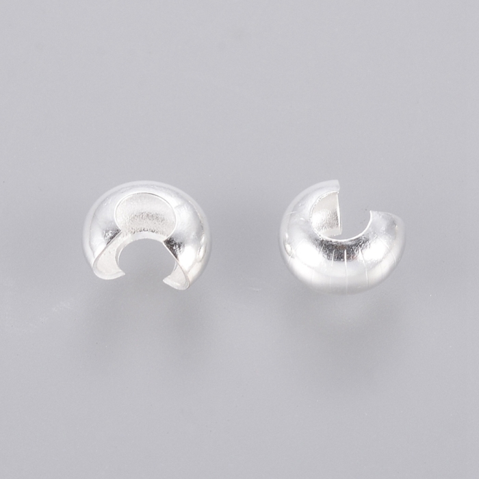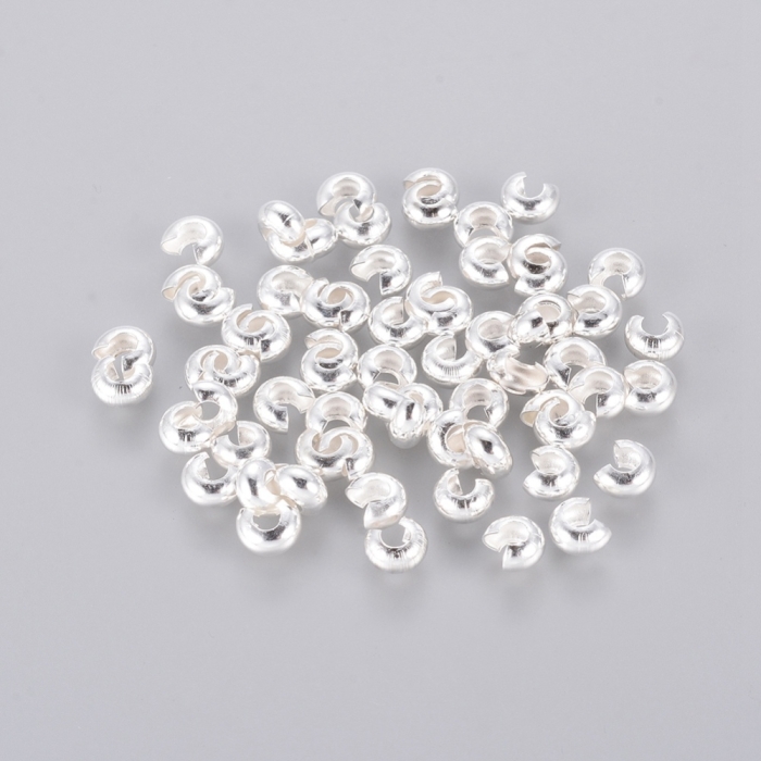 Намистини Кришки Кримпів, Латунь, Оболонки для Затискних Намистин Стопперів, Срібло, 4мм, Отвір 1.5-1.8мм, близько 100шт/10г, (13WB31285)колір: