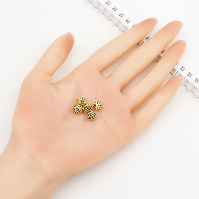 Круглі латунні намистини, інкрустовані кубічними цирконіями, відрізняються розкішним блиском та елегантністю. Завдяки довговічному покриттю вони зберігають свій вигляд довго, а безпечний склад (без свинцю та кадмію) робить їх придатними для щоденного використання.