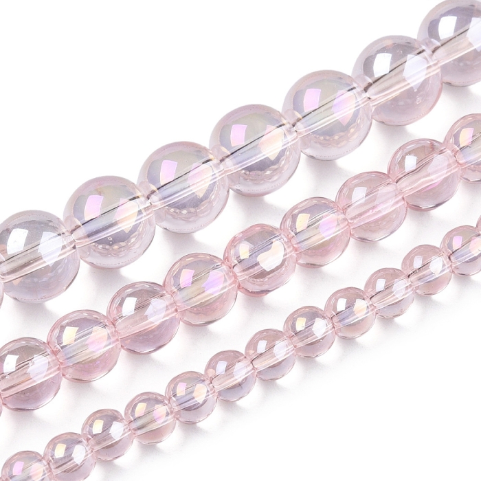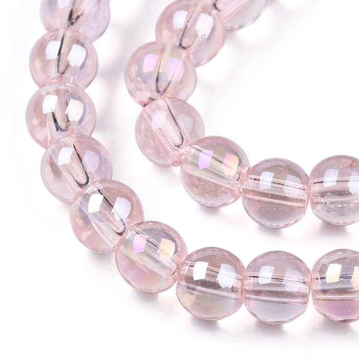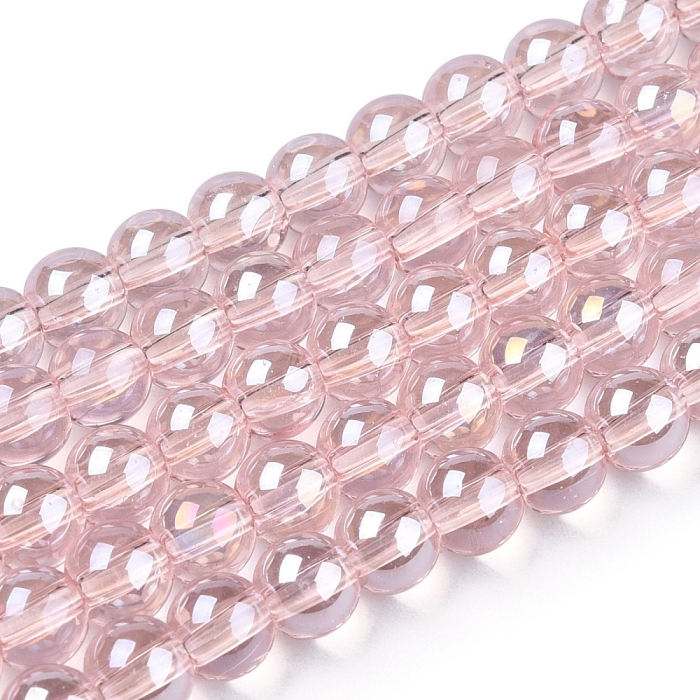 Намистини Скло Гальванічні, АВ колір, Круглі, Туманна троянда, 4-4.5мм, Отвір 0.8мм, близько 95шт/37см/нитка, (13WB32699)