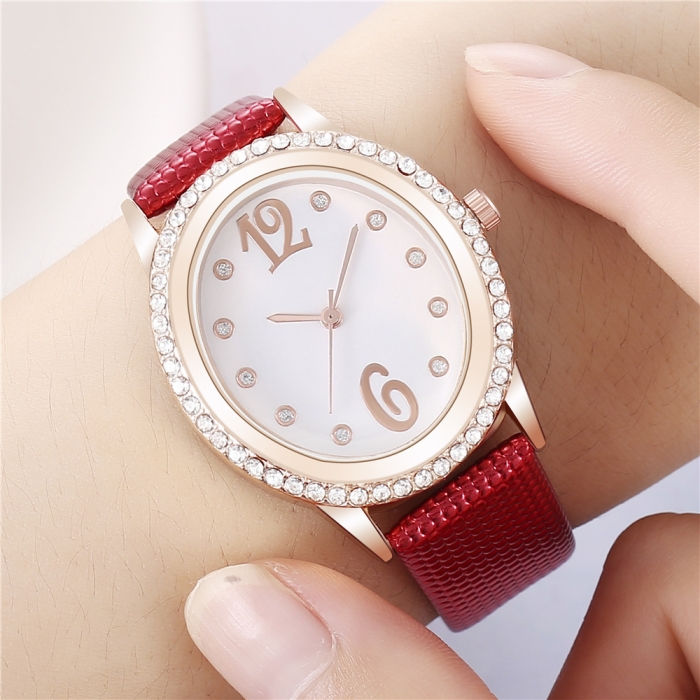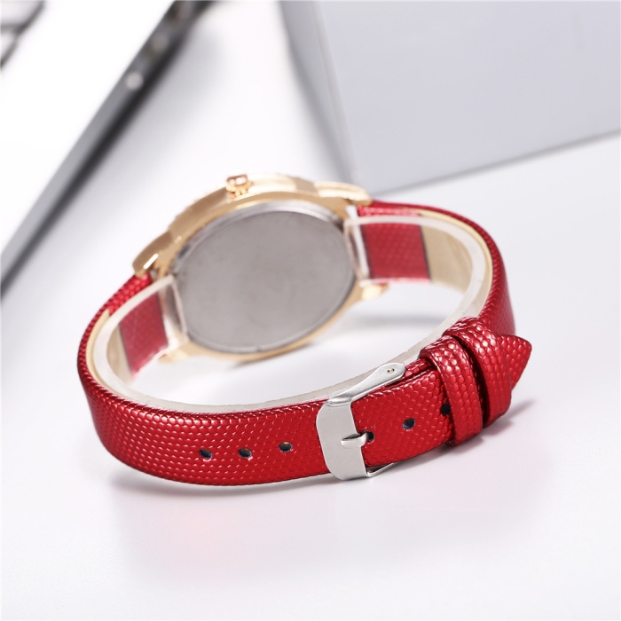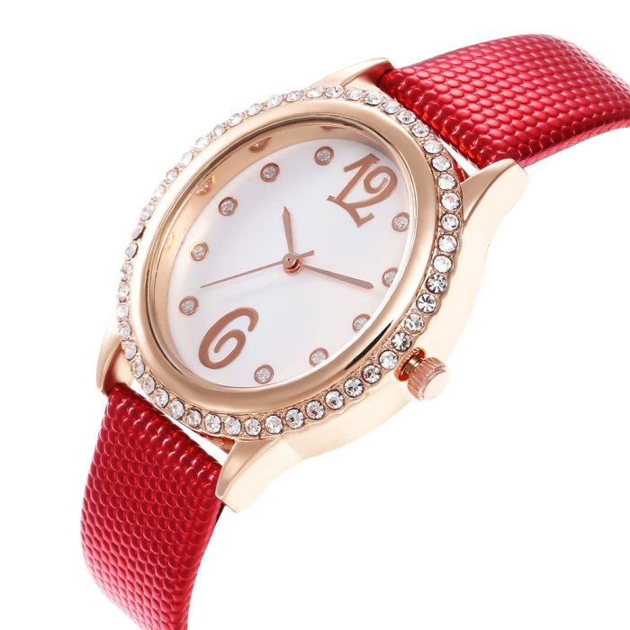 Годинники Жіночі зі Сплаву зі Стразами, Кварц, Ремінець з Кожзаму, Червоні, 33x37x10мм, (13WB23808)