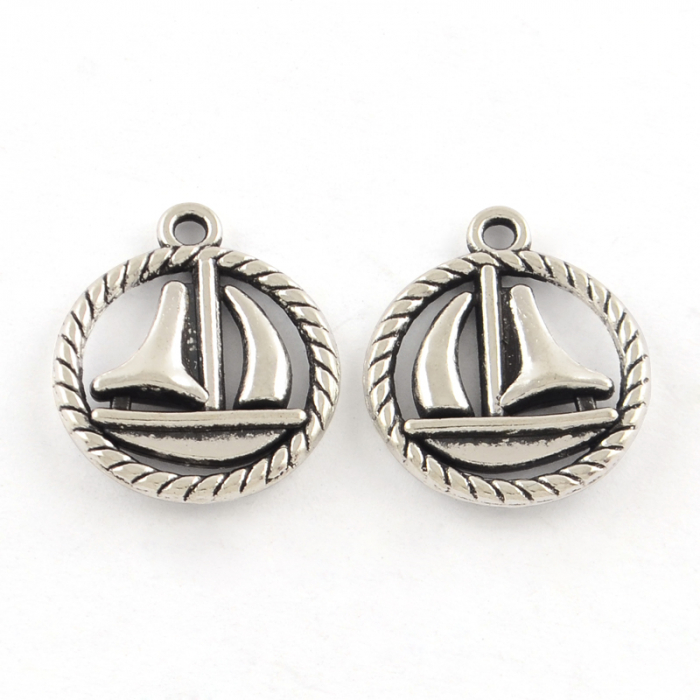 Кулон Підвіска Кораблик Метал, Античне Срібло, 18x15x3мм, Отвір 1.5мм, (14WB8754)