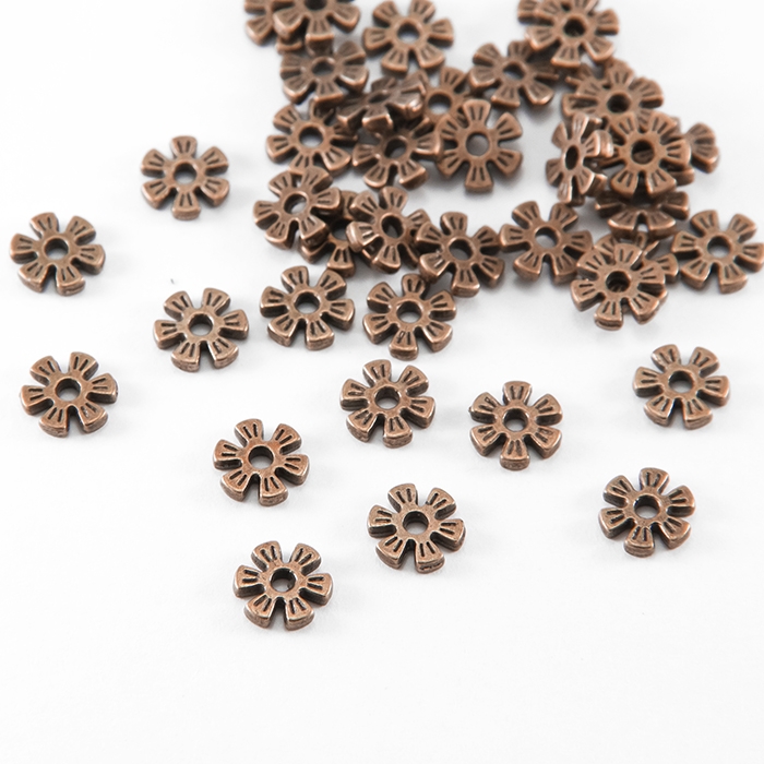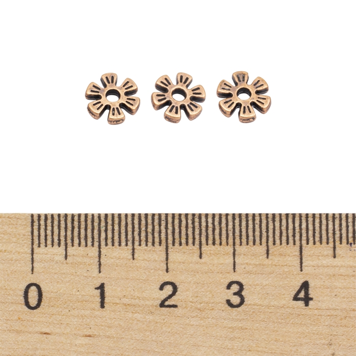 Намистини-Роздільники, Сплав, Квітка, Плоскі, Колір: Мідь, Розмір: 8х8х2мм, Отвір 3мм, (13WB17344)
