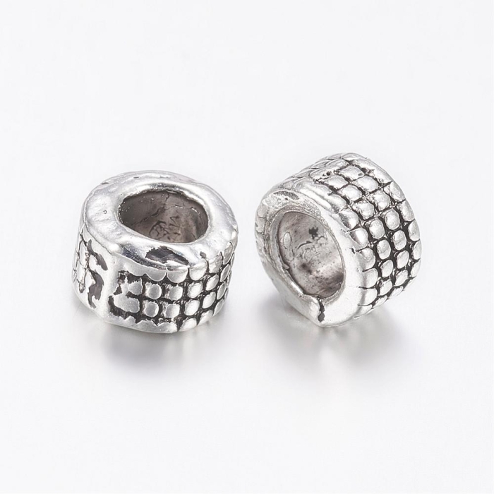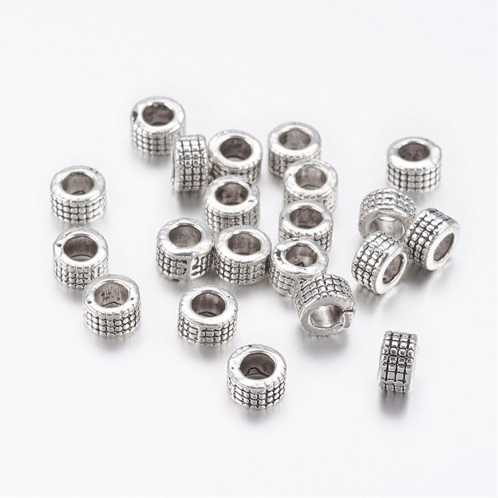 Намистини-Розділювачі з Біжутерного Сплаву в Тибетському Стилі Круглі Плоскі Колонка, без Свинцю та Кадмію Колір: Античне Срібло