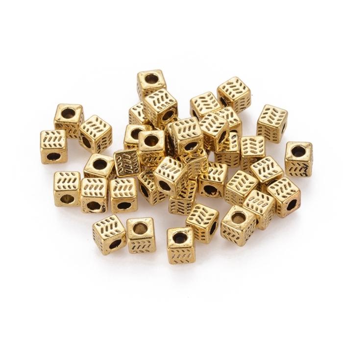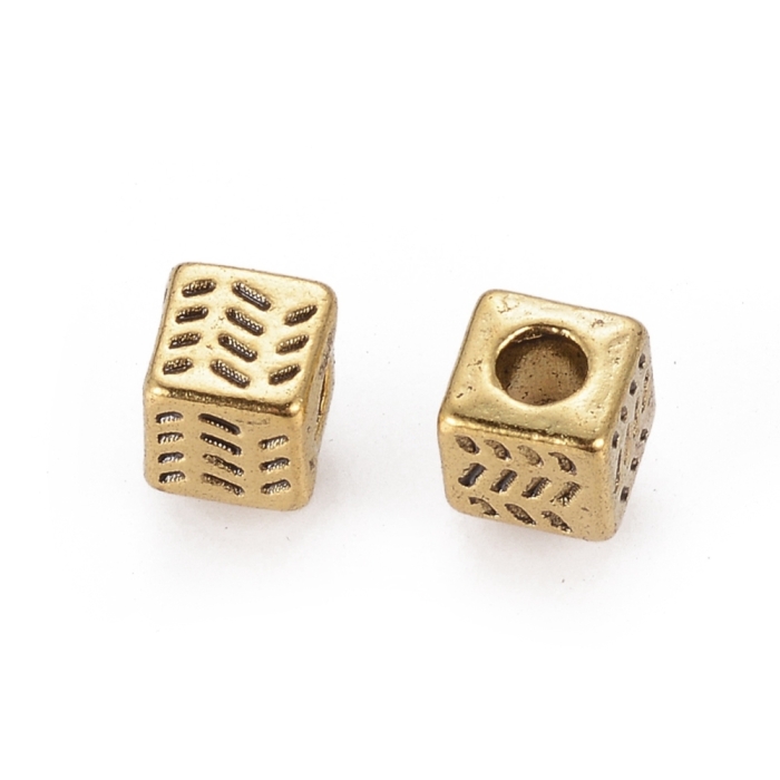 Намистини-Розділювачі в Стилі Тибету з Біжутерного Сплаву Кубики, без Свинцю і Кадмію Колір: Античне Золото