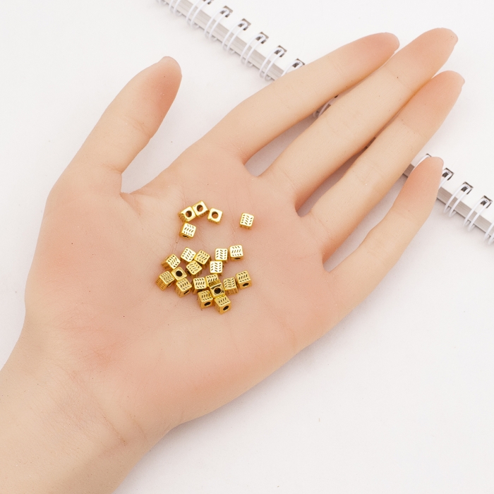 Намистини-розділювачі у формі кубиків, виконані в стилі Тибету, — це стильні елементи, які додають прикрасам етнічний шарм і індивідуальність. Виготовлені з безпечного та гіпоалергенного біжутерного сплаву, вони підходять навіть для чутливої шкіри. Міцний матеріал забезпечує довговічність та стійкість до зовнішніх впливів, зберігаючи привабливий зовнішній вигляд намистин на довгі роки.