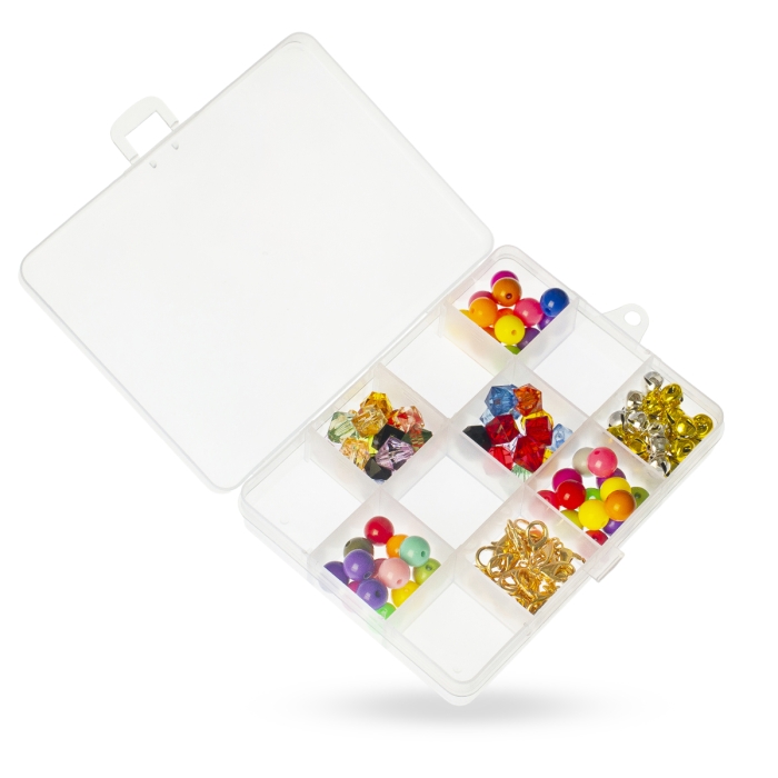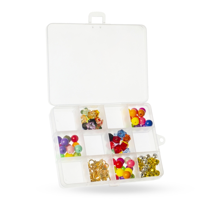 Контейнер для Бісера і Намистин, Пластик, безбарвний, Прямокутні, 13х10х2.2см, Отвір 5мм, (13WB19253)колір: